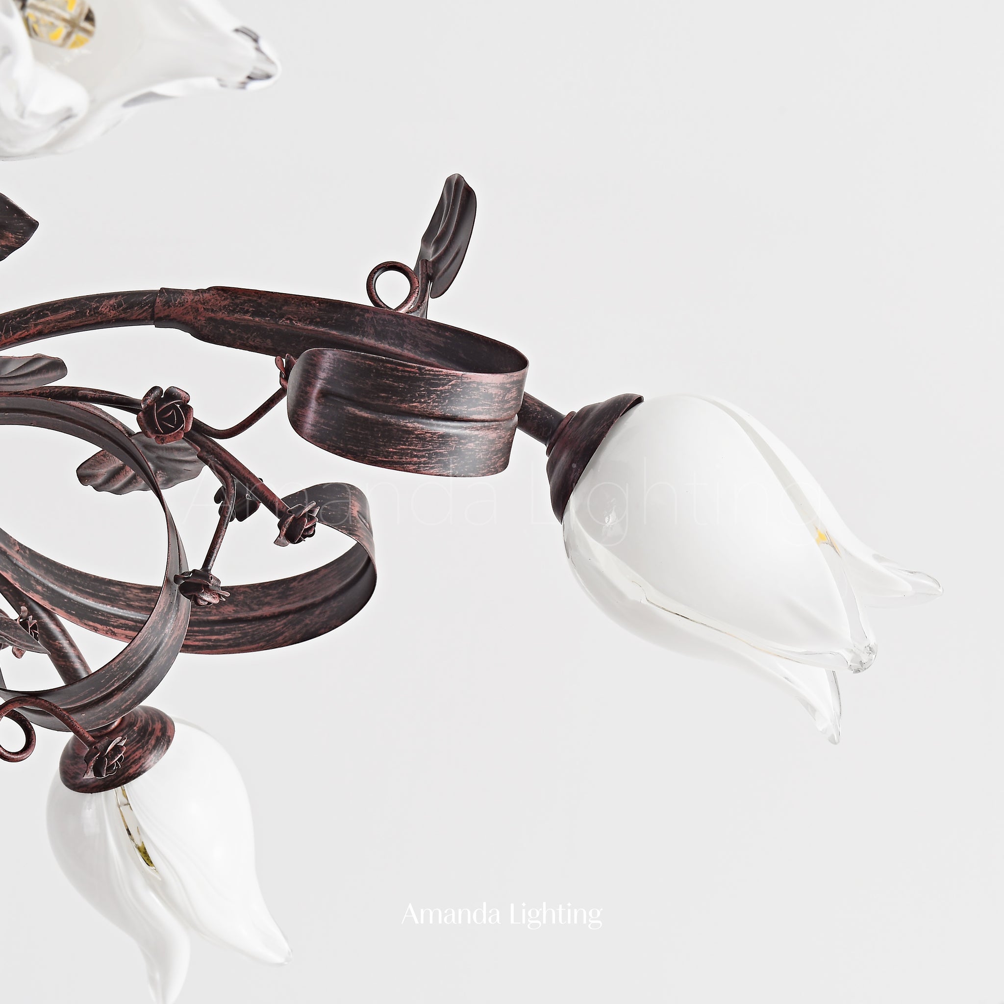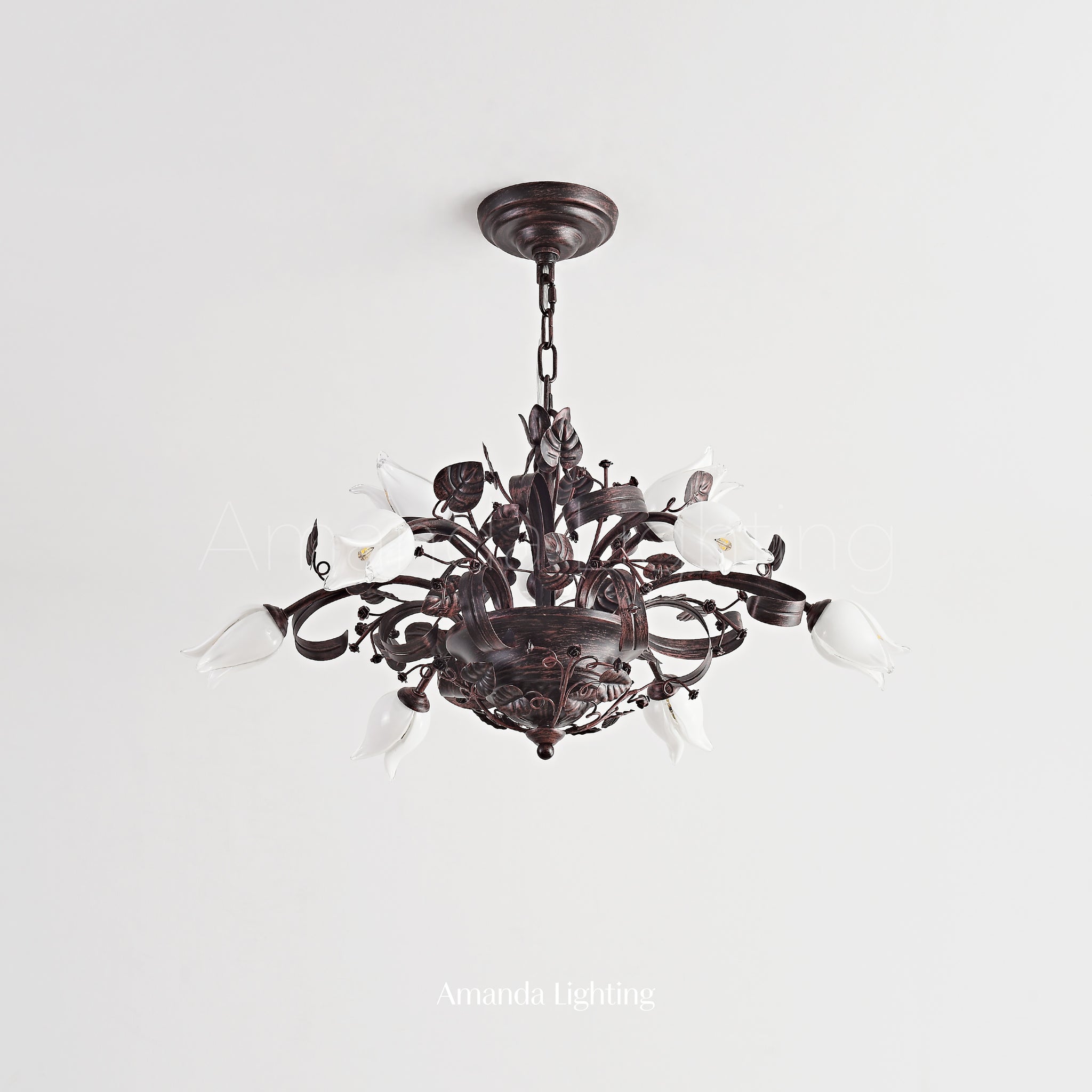 Floral Chandelier With White Tulip Lamp Shades - 6+3 Lights