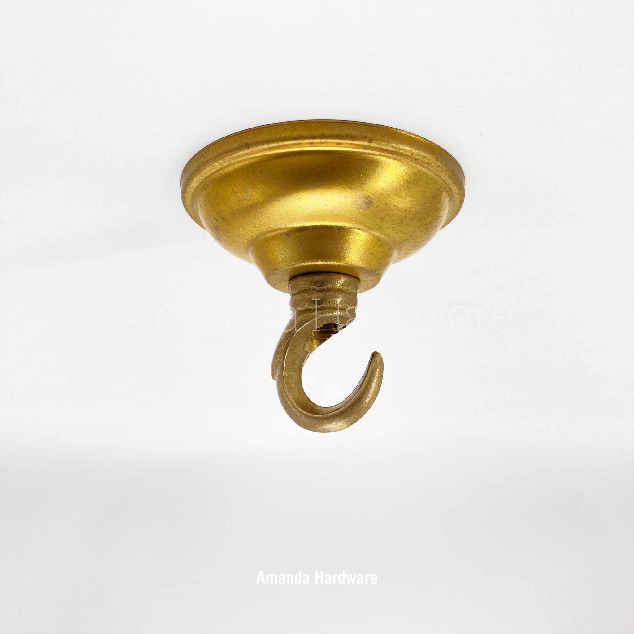 A mini dome stamped brass hook. It can be used to hang almost anything and will add style and charm to your home. The perfect accessory for home decor hangings on the ceiling and wall as well. This multi-purpose hook is ideal for hanging planters, flower pots, swag hanging pendant lamps, string lights, holiday decorations, wind chimes, sun catchers, bird feeders, lanterns and more! Easy to install with included hardware. The versatile open hook slot will accommodate various sized cords and rings.